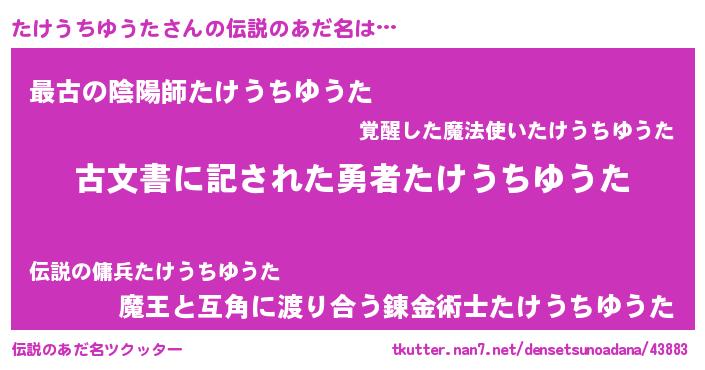 | ファンタジー風あだ名 | 『タケディッシュ』『ユリタケヴァット』 |