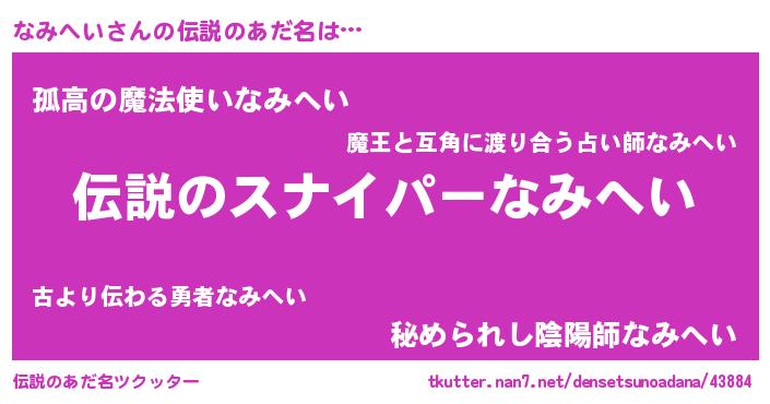 | ヒーロー風カッコイイあだ名 | 『仮面ナミダー』『スーパーナミヘイ』 |