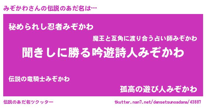 | 意味不明あだ名 | 『住所不定無職みぞかわ(6歳)』 |