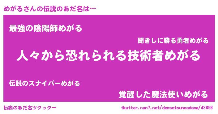 | ヒーロー風カッコイイあだ名 | 『正義の使者めがる』『究極戦士メガル』 |