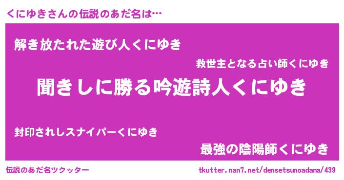 | 意味不明あだ名 | 『自称くにゆき』『永久保存くにゆき』 |