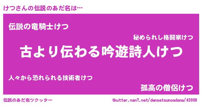 | ヒーロー風カッコイイあだ名 | 『仮面ケツダー』『ネオケツ』 |