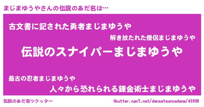 | ヒーロー風カッコイイあだ名 | 『スーパーマジマユウヤ』『銀牙騎士マジ』 |