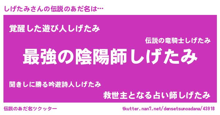| ヒーロー風カッコイイあだ名 | 『最強戦士シゲタミ』『炎刃騎士シゲ』 |