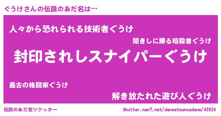 | ヒーロー風カッコイイあだ名 | 『スーパーグウケ』『正義の使者ぐうけ』 |