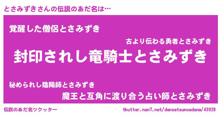 | ヒーロー風カッコイイあだ名 | 『スーパートサミズキ』『幻影騎士トサ』 |