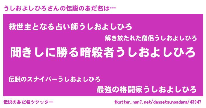 | 胡散臭い通販商品みたいなあだ名 | 『絶対に幸福をもたらす健康食品…その名も「うしおよしひろ」』 |