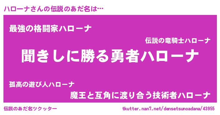 | ヒーロー風カッコイイあだ名 | 『ネオハローナ』『究極戦士ハローナ』 |