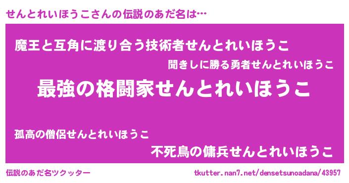 ヒーロー風カッコイイあだ名 | 『仮面センダー』『ネオセントレイホウコ』 |