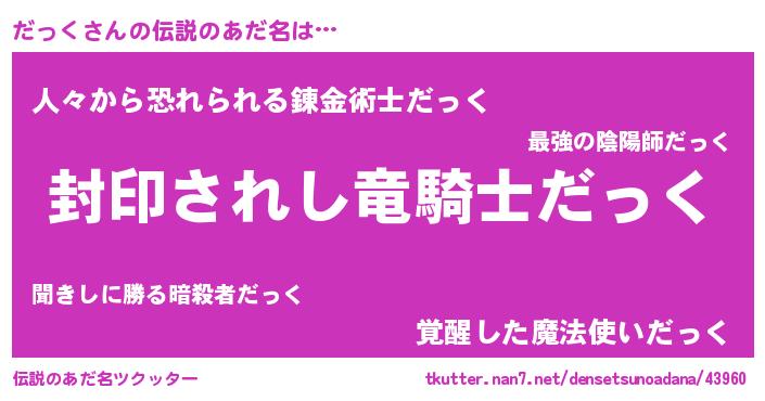 | 男性向けラノベタイトル風あだ名 | 『ダックアートオンライン』 |