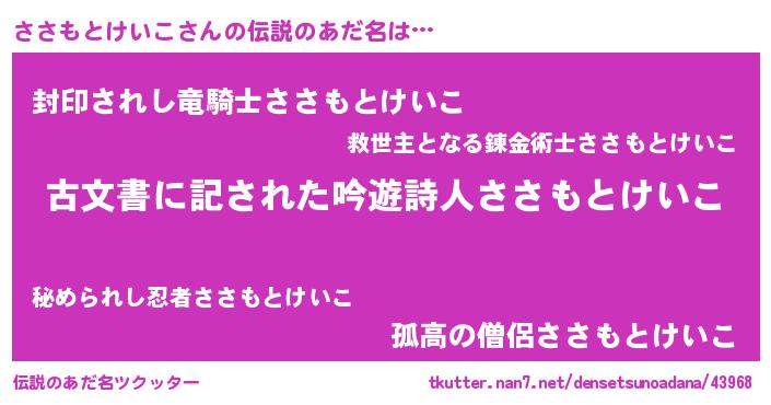 | ヘコむあだ名 | 『ささもとけいこ(小並感)』『ささにー』 |