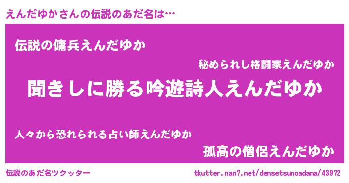 | ヘコむあだ名 | 『えんだゆか(笑)』『えんにゅー』 |
