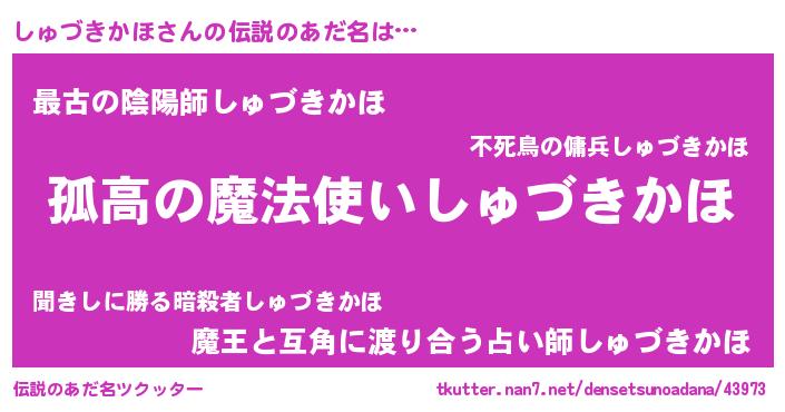 | 胡散臭い通販商品みたいなあだ名 | 『信頼と実績のサプリメント…その名も「しゅづきかほ」』 |
