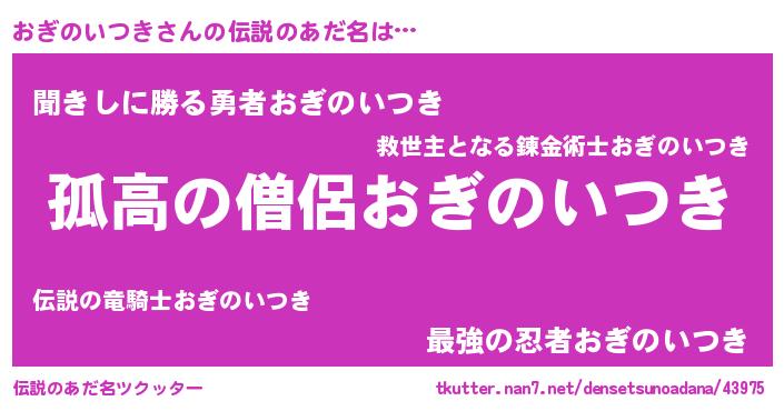 | ポケモン風あだ名 | 『ヒオギノイツキ』『オギセウス』 |