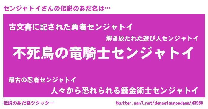| ヘコむあだ名 | 『センにー』『センジャトイ(苦笑)』 |