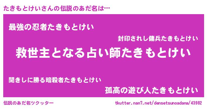 | 意味不明あだ名 | 『自称たきもとけい』 |