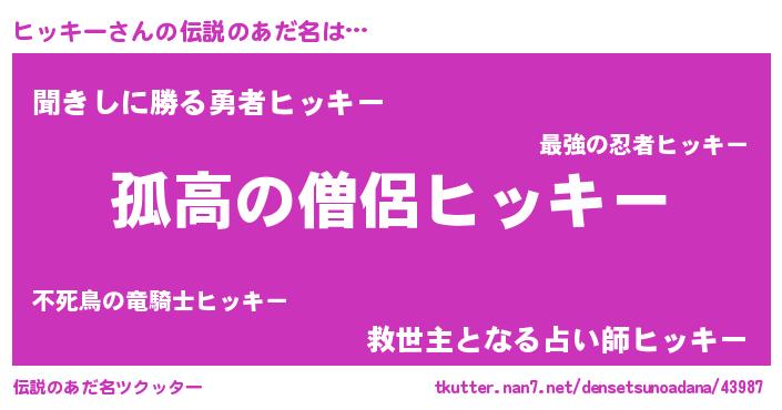 | 胡散臭い通販商品みたいなあだ名 | 『信頼と実績のネックレス…その名も「ヒッキー」』 |