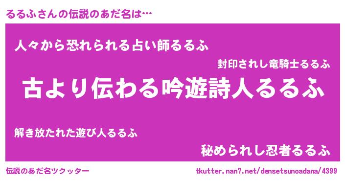 | ヒーロー風カッコイイあだ名 | 『ネオルルフ』『仮面ルルダー』 |