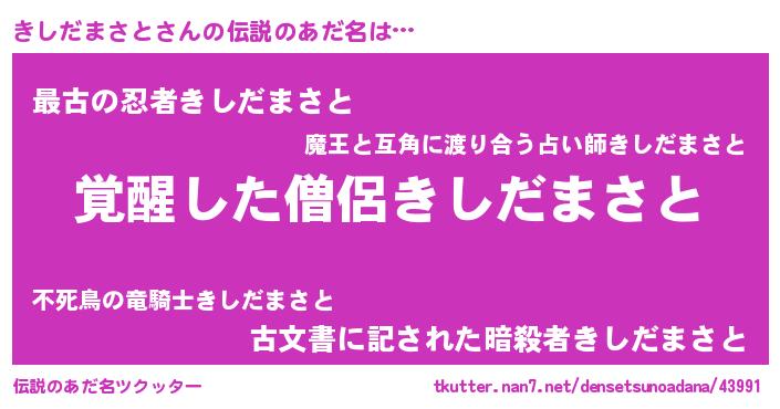 | ヒーロー風カッコイイあだ名 | 『天弓騎士キシ』『ネオキシダマサト』 |