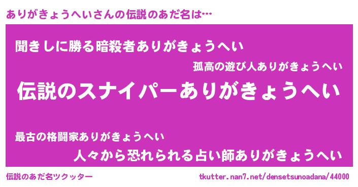 | 胡散臭い通販商品みたいなあだ名 | 『必ず成功する霊験あらたかなお札…その名も「ありがきょうへい」』 |