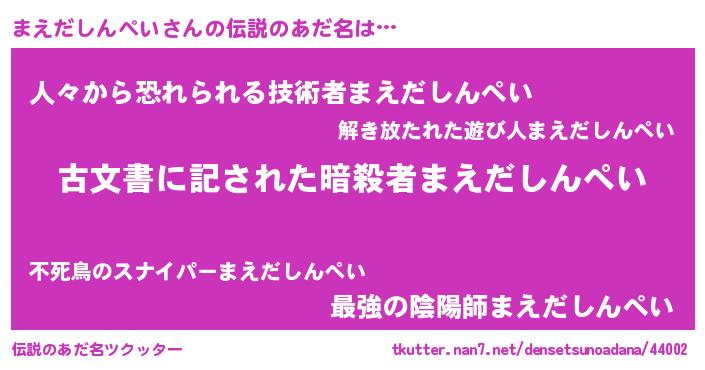 | ヒーロー風カッコイイあだ名 | 『ネオマエダシンペイ』『仮面マエダー』 |