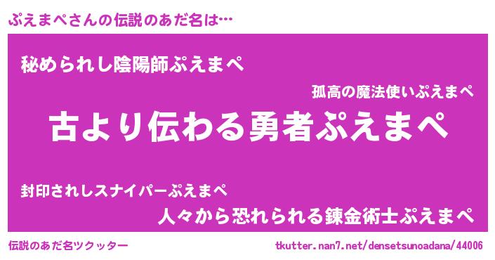 | 意味不明あだ名 | 『永久保存ぷえまぺ』 |