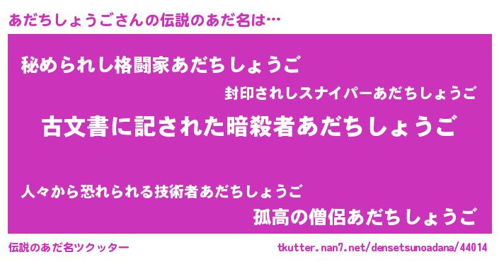| ヒーロー風カッコイイあだ名 | 『ネオアダチショウゴ』『魔戒騎士アダ』 |
