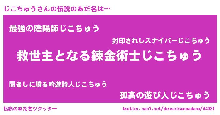 | 男性向けラノベタイトル風あだ名 | 『うちのじこちゅうが世界を掌握している!』 |