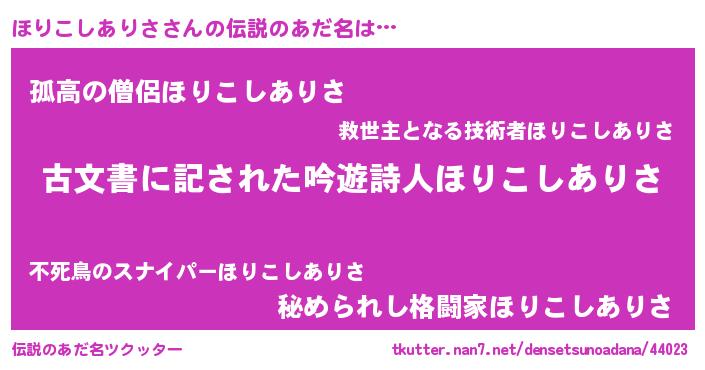 | 意味不明あだ名 | 『永久保存ほりこしありさ』 |