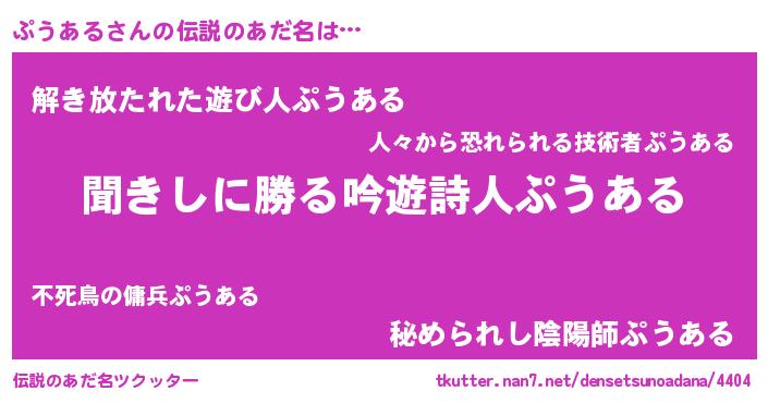 | 意味不明あだ名 | 『自称ぷうある』『永久保存ぷうある』 |