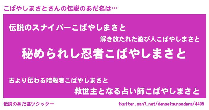 | 意味不明あだ名 | 『こばやしまさとフォーエバー』 |