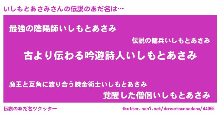 | 女子向けラノベタイトル風あだ名 | 『乙女ゲームの破滅フラグしかない悪役いしもとあさみに転生してしまった…』 |