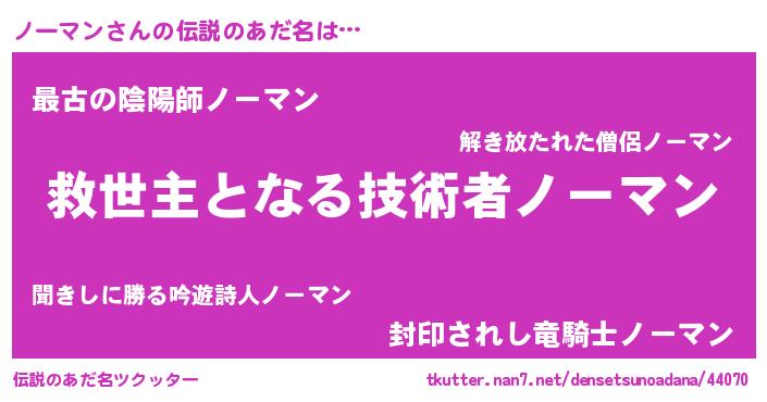 | ヒーロー風カッコイイあだ名 | 『慈愛の使者ノーマン』『仮面ノーダー』 |