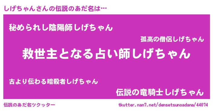 | ヒーロー風カッコイイあだ名 | 『慈愛の使者しげちゃん』『銀牙騎士シゲ』 |