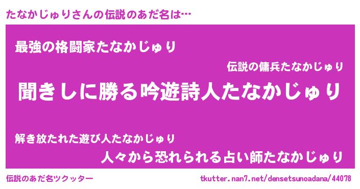 | 意味不明あだ名 | 『永久保存たなかじゅり』 |