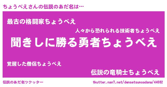 | 男性向けラノベタイトル風あだ名 | 『ちょうべえという概念が存在しない退屈な世界 』 |
