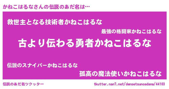 | ヘコむあだ名 | 『かねこはるな(震え声)』『かねを』 |