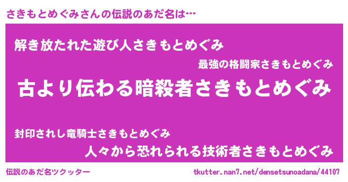 | 胡散臭い通販商品みたいなあだ名 | 『来世でも幸せになれる健康食品…その名も「さきもとめぐみ」』 |