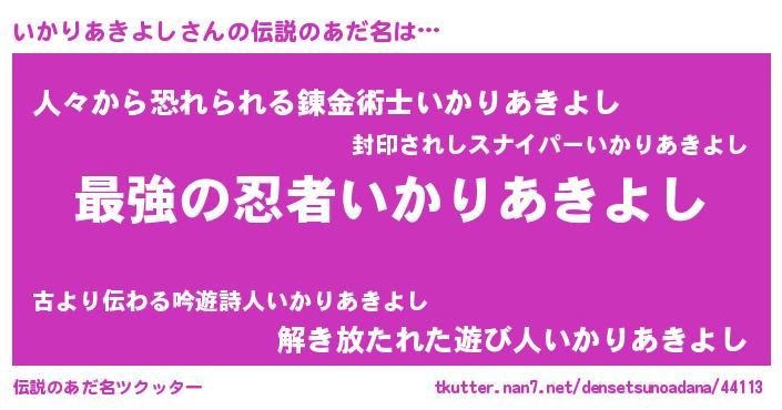 | 意味不明あだ名 | 『住所不定無職いかりあきよし(50歳)』 |