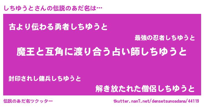 | ヘコむあだ名 | 『しちゆうと(笑)』『しちっちょ』 |