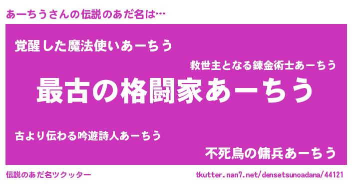| ファンタジー風あだ名 | 『エターナルアーチウー』『ゼアートゥ』 |