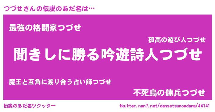 | 男性向けラノベタイトル風あだ名 | 『つづせという概念が存在しない退屈な世界 』 |
