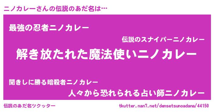 | ヒーロー風カッコイイあだ名 | 『銀牙騎士ニノ』『正義の使者ニノカレー』 |