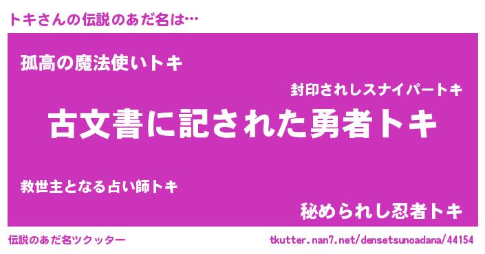 | ファンタジー風あだ名 | 『トキディッシュ』『ファントムトキス』 |