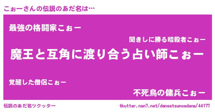| ヒーロー風カッコイイあだ名 | 『慈愛の使者こぉー』『仮面コォダー』 |
