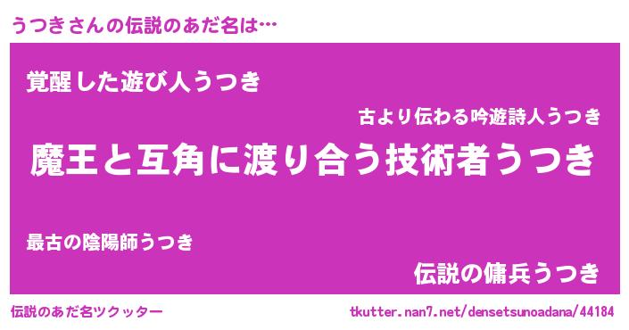 | 女子向けラノベタイトル風あだ名 | 『うつき恋絵巻』『うつき様がみてる』 |