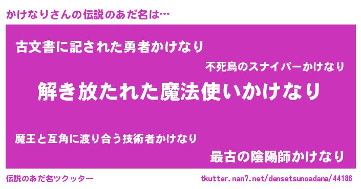 | 意味不明あだ名 | 『住所不定無職かけなり(6歳)』 |