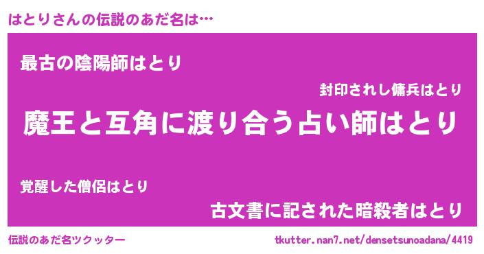 | ヒーロー風カッコイイあだ名 | 『慈愛の使者はとり』『ネオハトリ』 |