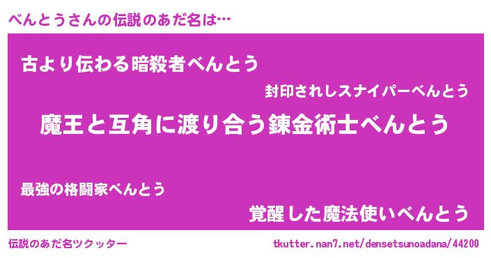 | ヒーロー風カッコイイあだ名 | 『友情の使者べんとう』『ネオベントウ』 |