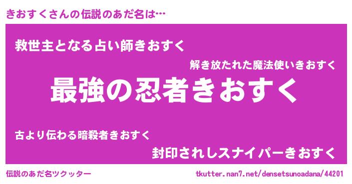 | 意味不明あだ名 | 『自称きおすく』『きおすくフォーエバー』 |